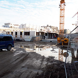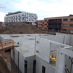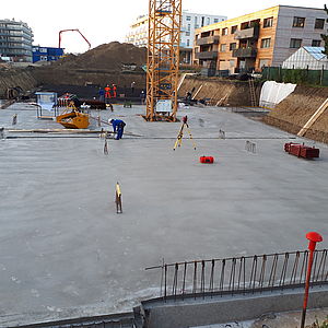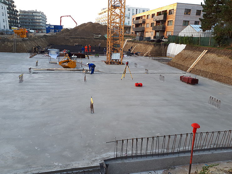 • Die Verlegung des Rohrsystems für die Betonkernaktivierung ist in vollem Gange