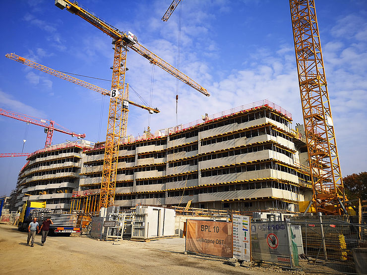 Es geht voran! Im Vergleich zu unserem letzten Besuch im Juli hat sich einiges getan. Halbzeit: Fünf der geplanten 11 Stockwerke stehen bereits. Unser im Bau befindliches Wohnhochhaus im ebenfalls neu entstehenden Zelda-Kaplan-Weg 6 in Wien 10 wächst also noch ein wenig mehr in den Himmel.