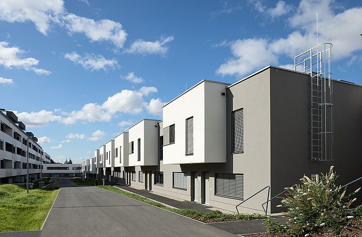 Voller Stolz schauen wir auf unsere bereits bewohnte Wohnanlage „Grüne Vielfalt Oberlaa“ im 10. Bezirk. Die brandneuen Fertigstellungsfotos zeigen, was die frischgebackenen BewohnerInnen der 165 Eigentumswohnungen jeden Tag sehen können: großzügige Grünanlagen, Spiel- und Entspannungszonen sowie die Architektur der schönen Neubauten selbst.