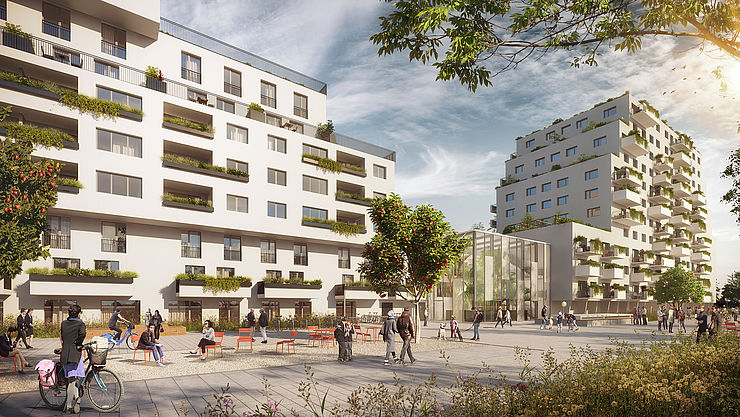 - Hochh(in)aus – Ein grünes Juwel am Wienerberg, 1100 Wien, 117 freifinanzierte Eigentumswohnungen
