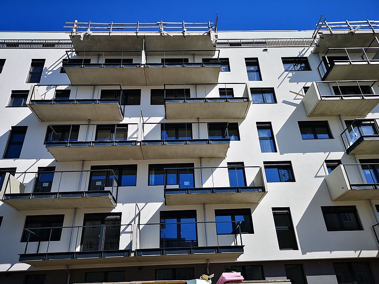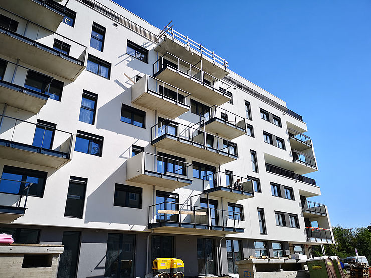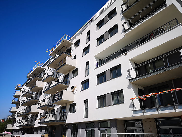Es hat sich einiges verändert auf unserer Baustelle in der Czeikestraße 6 in Wien Favoriten. Im Februar zierte noch das Baustellengerüst die Wohnhausanlage, nun sind die Fassadenarbeiten fertiggestellt – ein weiterer Meilenstein ist geschafft. Derzeit finden unter anderem Arbeiten an den Balkonen, Loggien und Gärten sowie im Inneren des Gebäudes statt.