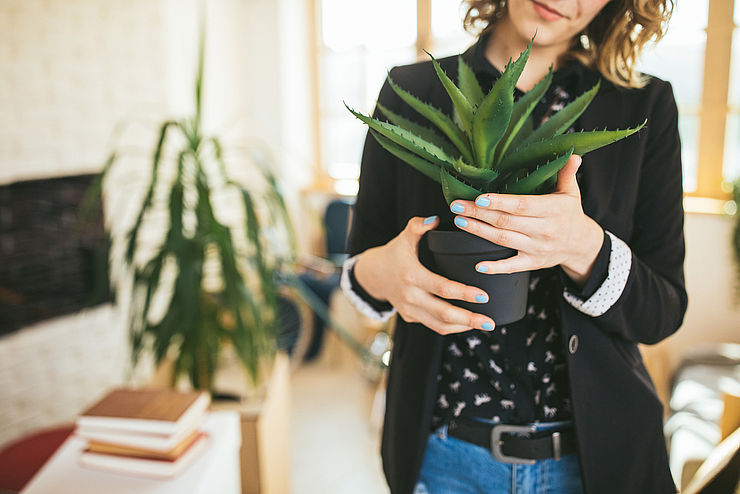 Die Aloe Vera ist der perfekte Wegbegleiter für alle, die keinen grünen Daumen haben. Sie hat lieber wenig Wasser als zu viel und fühlt sich bei leichter Dürre erst richtig wohl.