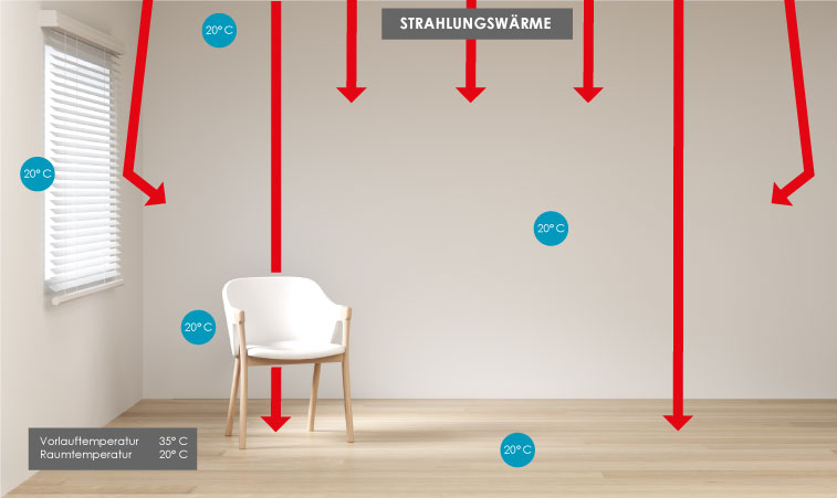 Dank der großflächigen Strahlung entstehen keine gravierenden Temperaturunterschiede innerhalb des Raumes.