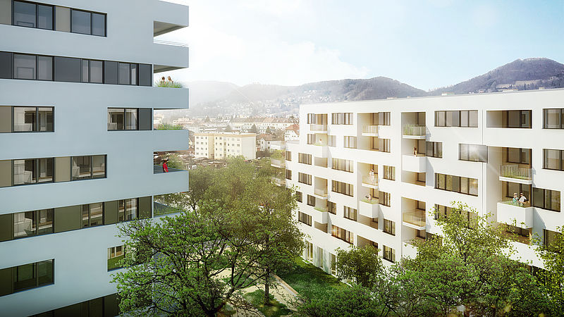 Der 3. Bauabschnitt, in dem sich 242 schlüsselfertige Eigentumswohnungen für EndverbraucherInnen und AnlegerInnen befinden, unterteilt sich in Bauteil 3, 4, 5 und 6, bestehend aus einem Flügel und zwei Türmen. Damit ist die Wohnhausanlage vor allem eines: Ein neues Zuhause für viele Wohnungssuchende GrazerInnen, die in Eggenberg ein neues Eigenheim gefunden haben.
