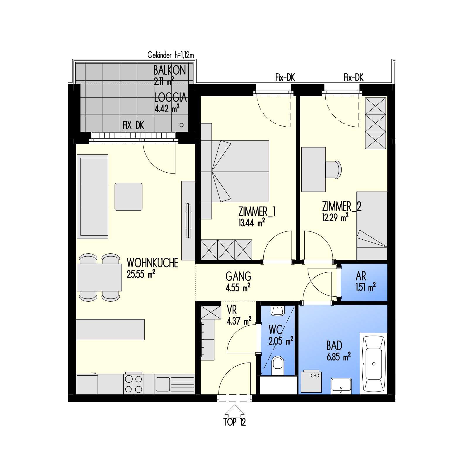 Green Eastside - Leben in der Donaustadt Bertha-von-Suttner-Gasse 4, 1220 Wien Eckdaten Stiege 1 • Stock 1.OG • Top 1-012 Zimmer 3 • Größe 75,03 m²/4,42 m² Loggia/2,11 m² Balkon Bezug geplant Q4/2022 Preis/Finanzierung Gesamtkaufpreis EUR 380.777,25