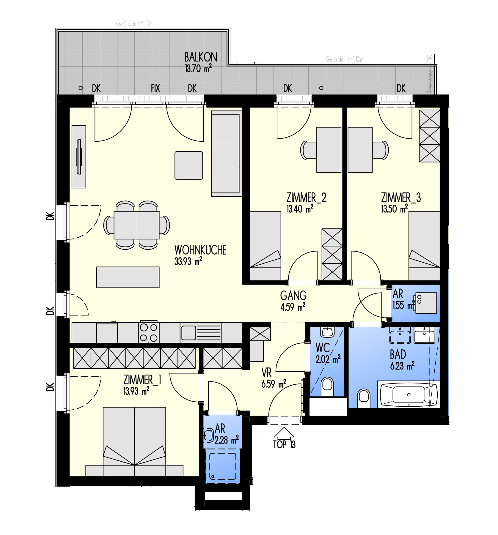 Green Eastside - Leben in der Donaustadt Bertha-von-Suttner-Gasse 4, 1220 Wien Eckdaten Stiege 2 • Stock 2.OG • Top 2-013 Zimmer 4 • Größe 98,02 m²/13,70 m² Balkon Bezug geplant Q4/2022 Preis/Finanzierung Gesamtkaufpreis EUR 512.154,50