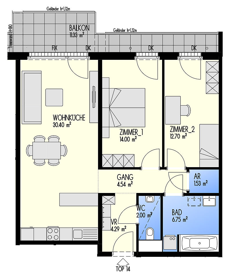 Green Eastside - Leben in der Donaustadt Bertha-von-Suttner-Gasse 4, 1220 Wien Eckdaten Stiege 2 • Stock 2.OG • Top 2-014 Zimmer 3 • Größe 76,21 m²/11,33 m² Balkon Bezug geplant Q4/2022 Preis/Finanzierung Gesamtkaufpreis EUR 390.576,25