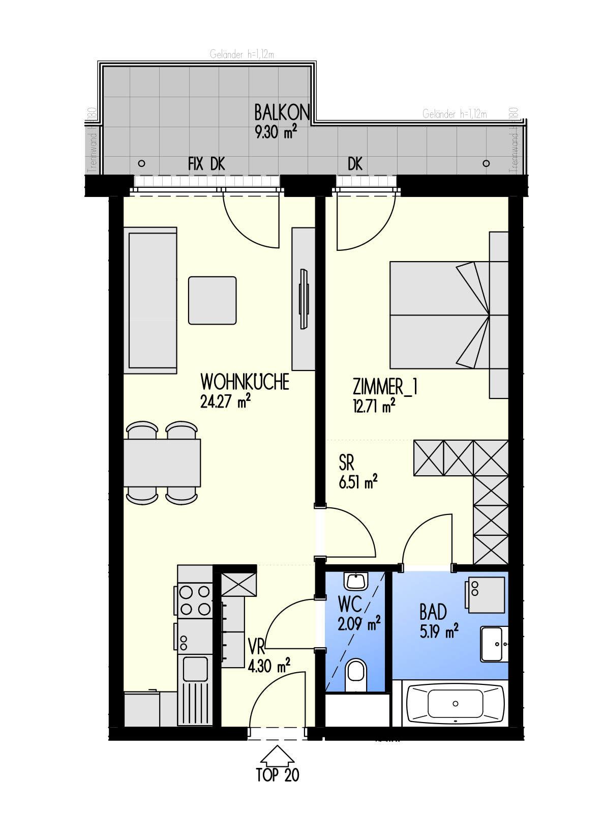 Green Eastside - Leben in der Donaustadt Bertha-von-Suttner-Gasse 4, 1220 Wien Eckdaten Stiege 2 • Stock 3.OG • Top 2-020 Zimmer 2 • Größe 55,07 m²/9,30 m² Balkon Bezug geplant Q4/2022 Preis/Finanzierung Gesamtkaufpreis EUR 290.494,25