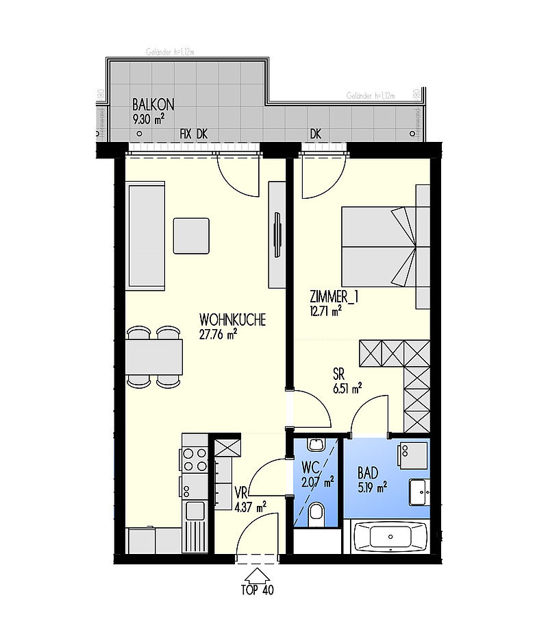 Green Eastside - Leben in der Donaustadt Bertha-von-Suttner-Gasse 4, 1220 Wien Eckdaten Stiege 2 • Stock 5.OG • Top 2-040 Zimmer 2 • Größe 58,61 m²/9,30 m² Balkon Bezug geplant Q4/2022 Preis/Finanzierung Gesamtkaufpreis EUR 320.889,75