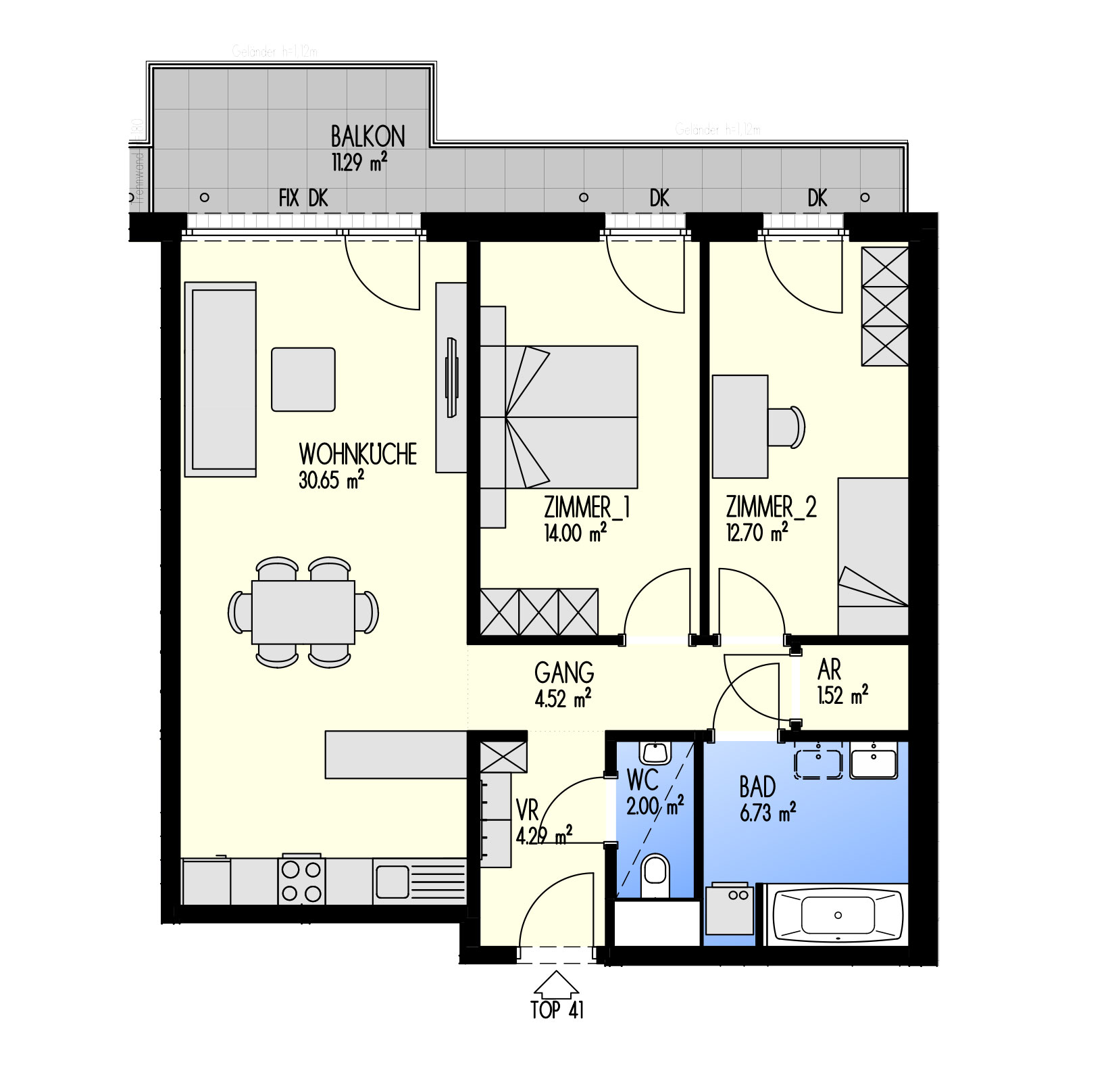 Green Eastside - Leben in der Donaustadt Bertha-von-Suttner-Gasse 4, 1220 Wien Eckdaten Stiege 2 • Stock 5.OG • Top 2-041 Zimmer 3 • Größe 76,41 m²/11,33 m² Balkon Bezug geplant Q4/2022 Preis/Finanzierung Gesamtkaufpreis EUR 414.524,25