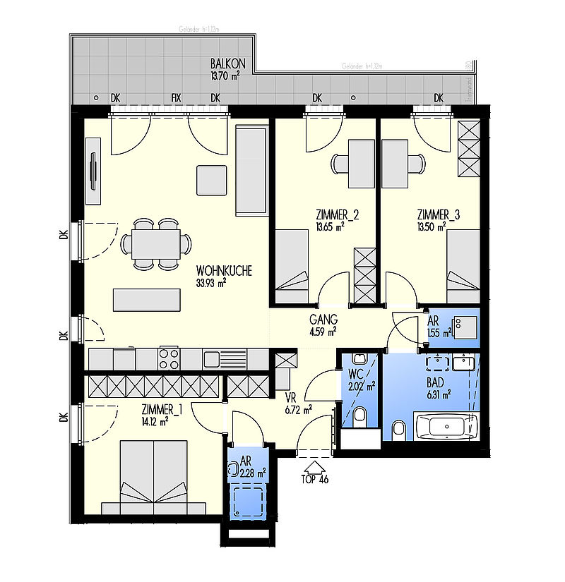 Green Eastside - Leben in der Donaustadt Bertha-von-Suttner-Gasse 4, 1220 Wien Eckdaten Stiege 2 • Stock 6.OG • Top 2-046 Zimmer 4 • Größe 98,67 m²/13,70 m² Balkon Bezug geplant Q4/2022 Preis/Finanzierung Gesamtkaufpreis EUR 555.018,75