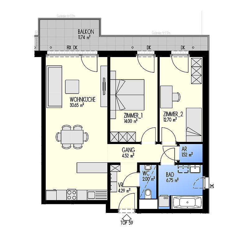 Green Eastside - Leben in der Donaustadt Bertha-von-Suttner-Gasse 4, 1220 Wien Eckdaten Stiege 2 • Stock 7.OG • Top 2-059 Zimmer 3 • Größe 76,43 m²/11,74 m² Balkon Bezug geplant Q4/2022 Preis/Finanzierung Gesamtkaufpreis EUR 460.490,75