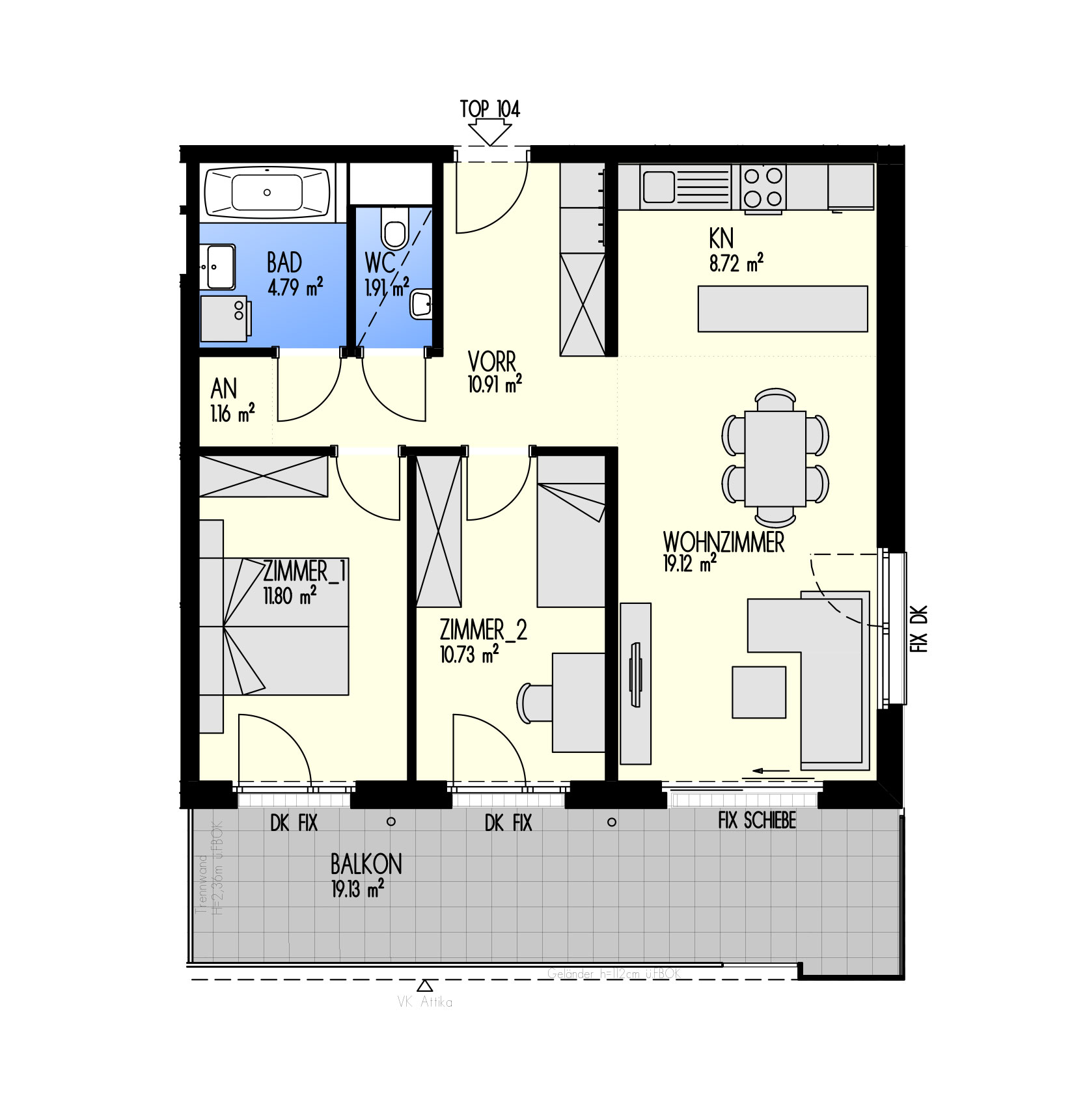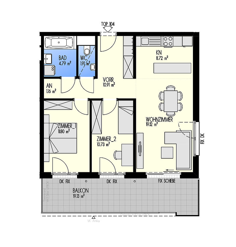 Green Eastside - Leben in der Donaustadt Bertha-von-Suttner-Gasse 4, 1220 Wien Eckdaten Stiege 3 • Stock 10.OG • Top 3-104 Zimmer 3 • Größe 69,14 m²/19,13 m² Balkon Bezug geplant Q4/2022 Preis/Finanzierung Gesamtkaufpreis EUR 483.288,60