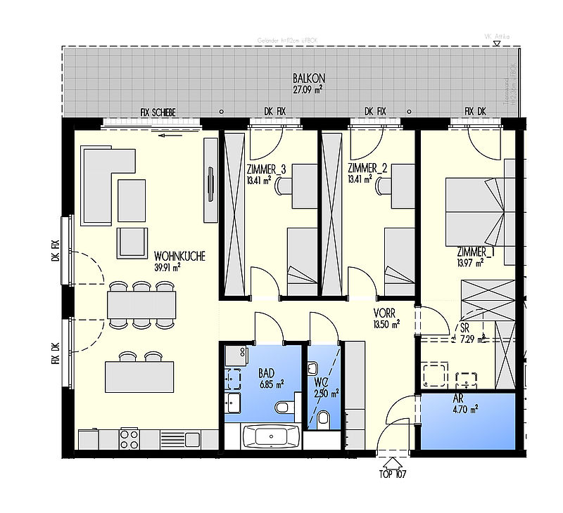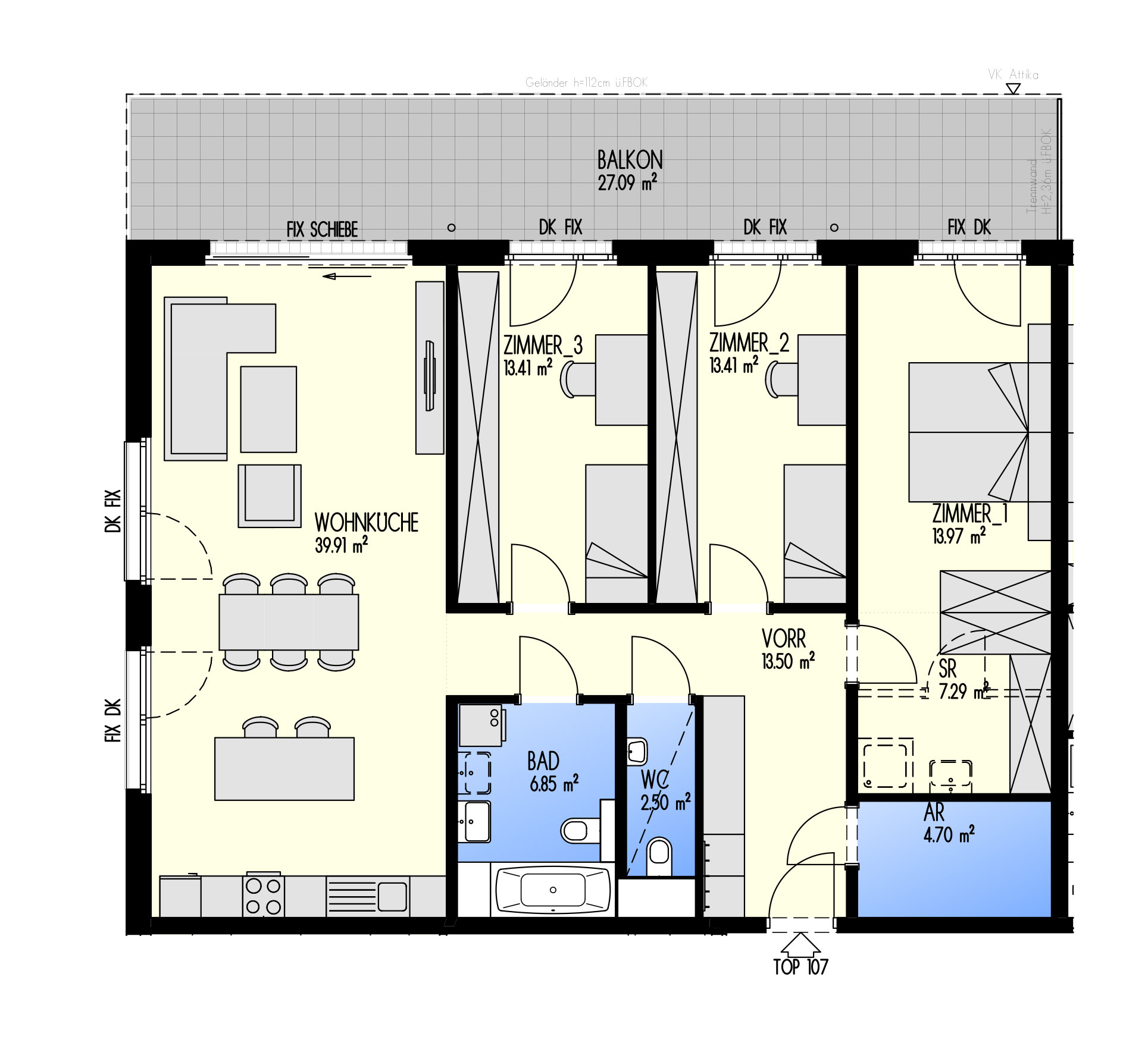 Green Eastside - Leben in der Donaustadt Bertha-von-Suttner-Gasse 4, 1220 Wien Eckdaten Stiege 3 • Stock 10.OG • Top 3-107 Zimmer 4 • Größe 115,54 m²/27,09 m² Balkon Bezug geplant Q4/2022 Preis/Finanzierung Gesamtkaufpreis EUR 814.557,00