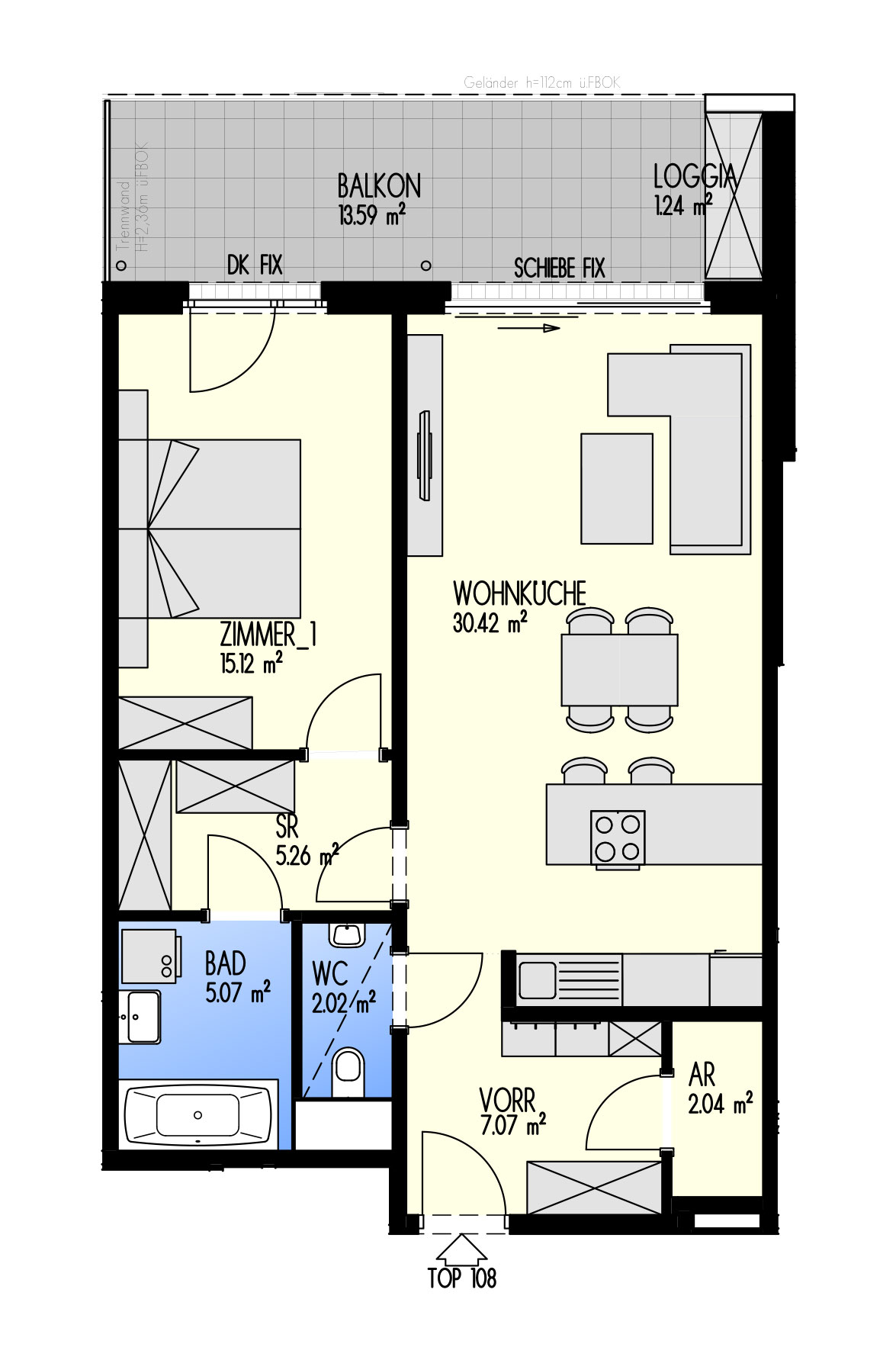 Green Eastside - Leben in der Donaustadt Bertha-von-Suttner-Gasse 4, 1220 Wien Eckdaten Stiege 3 • Stock 10.OG • Top 3-108 Zimmer 2 • Größe 68,24 m²/1,24 m² Loggia/13,59 m² Balkon Bezug geplant Q4/2022 Preis/Finanzierung Gesamtkaufpreis EUR 476.997,60