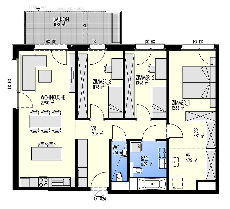 Green Eastside - Leben in der Donaustadt Bertha-von-Suttner-Gasse 4, 1220 Wien Eckdaten Stiege 3 • Stock 2.OG • Top 3-024 Zimmer 4 • Größe 98,89 m²/11,73 m² Balkon Bezug geplant Q4/2022 Preis/Finanzierung Gesamtkaufpreis EUR 511.755,75