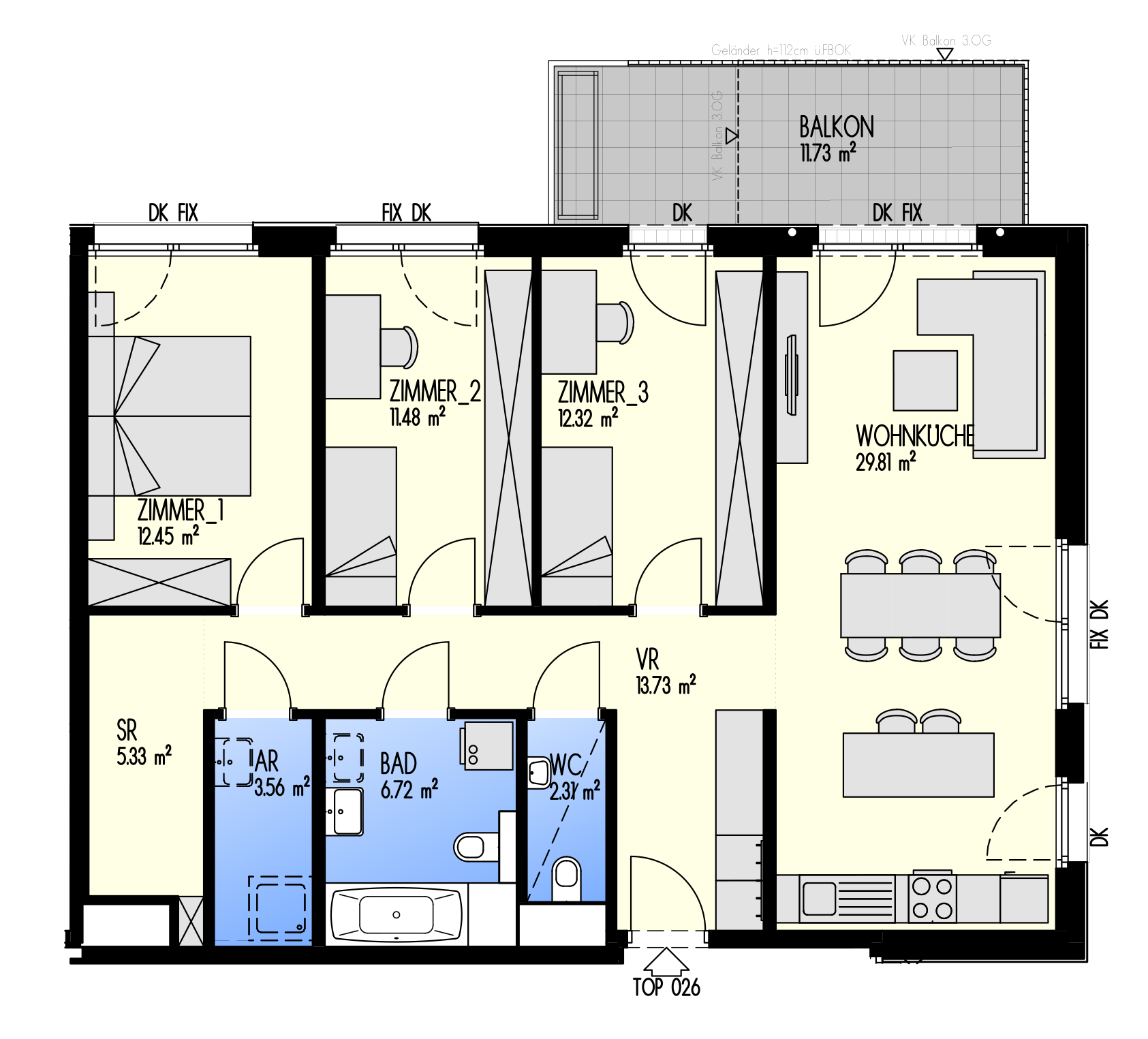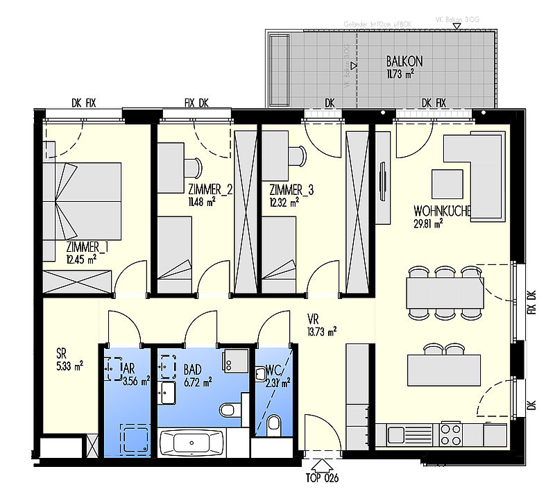 Green Eastside - Leben in der Donaustadt Bertha-von-Suttner-Gasse 4, 1220 Wien Eckdaten Stiege 3 • Stock 2.OG • Top 3-026 Zimmer 4 • Größe 97,71 m²/11,73 m² Balkon Bezug geplant Q4/2022 Preis/Finanzierung Gesamtkaufpreis EUR 505.649,25