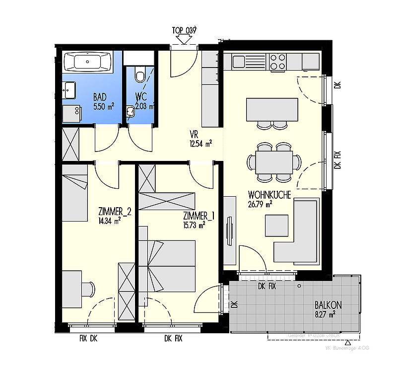Green Eastside - Leben in der Donaustadt Bertha-von-Suttner-Gasse 4, 1220 Wien Eckdaten Stiege 3 • Stock 3.OG • Top 3-039 Zimmer 3 • Größe 76,93 m²/8,27 m² Balkon Bezug geplant Q4/2022 Preis/Finanzierung Gesamtkaufpreis EUR 405.805,75