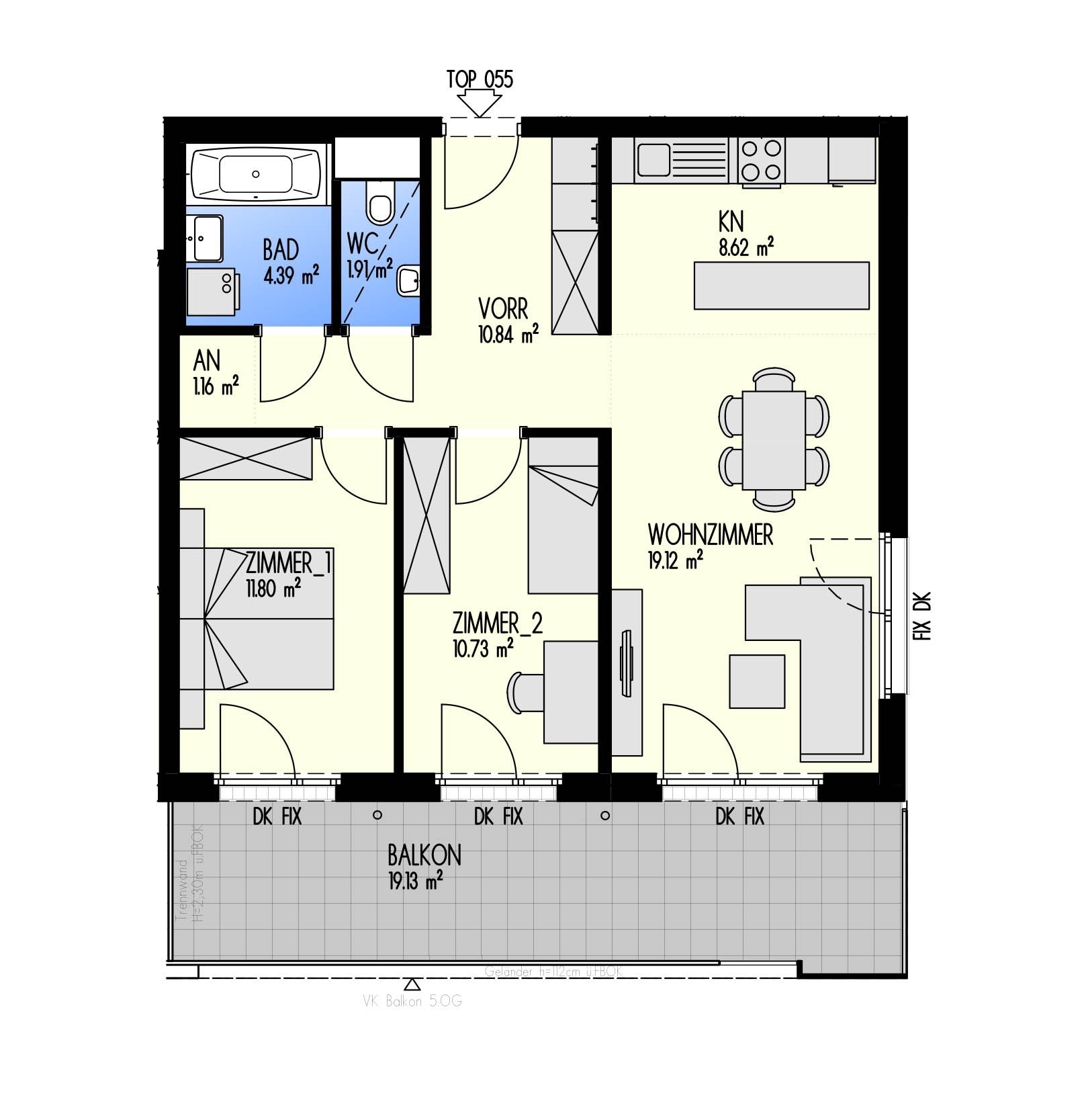 Green Eastside - Leben in der Donaustadt Bertha-von-Suttner-Gasse 4, 1220 Wien Eckdaten Stiege 3 • Stock 4.OG • Top 3-055 Zimmer 3 • Größe 68,57 m²/19,13 m² Balkon Bezug geplant Q4/2022 Preis/Finanzierung Gesamtkaufpreis EUR 368.563,75