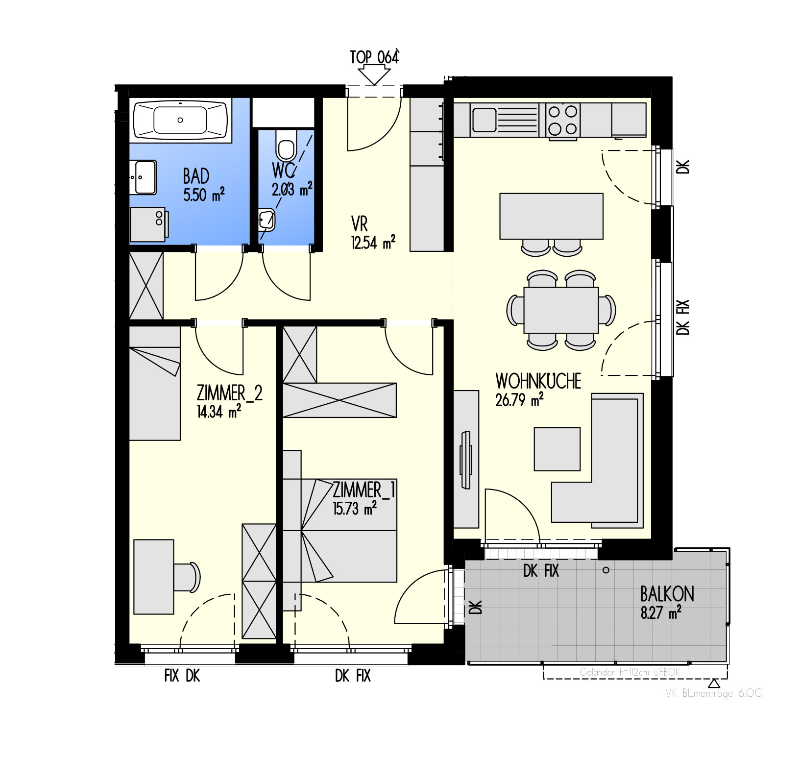 Green Eastside - Leben in der Donaustadt Bertha-von-Suttner-Gasse 4, 1220 Wien Eckdaten Stiege 3 • Stock 5.OG • Top 3-064 Zimmer 3 • Größe 76,93 m²/8,27 m² Balkon Bezug geplant Q4/2022 Preis/Finanzierung Gesamtkaufpreis EUR 421.191,75