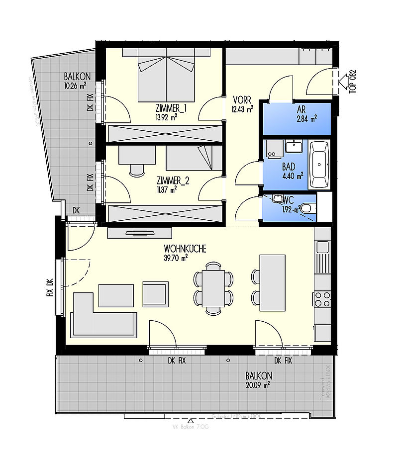Green Eastside - Leben in der Donaustadt Bertha-von-Suttner-Gasse 4, 1220 Wien Eckdaten Stiege 3 • Stock 6.OG • Top 3-082 Zimmer 3 • Größe 86,58 m²/30,35 m² Balkon Bezug geplant Q4/2022 Preis/Finanzierung Gesamtkaufpreis EUR 482.683,50