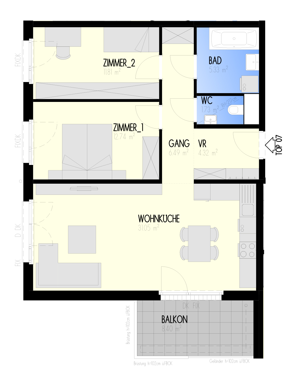 Garten-Städtchen-22 – Wohnen am Fliedergarten Marlen-Haushofer-Weg 2 & 4 (Raffenstättergasse) , 1220 Wien Eckdaten Haus 2 • Stock 1.OG • Top 2-07 Zimmer 3 • Größe 73,47 m²/8,4 m² Balkon Bezug geplant Anfang 2023 Preis/Finanzierung Gesamtkaufpreis EUR 358.000,00