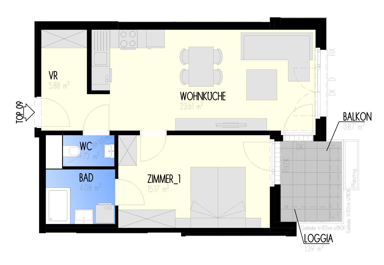 Garten-Städtchen-22 – Wohnen am Fliedergarten Marlen-Haushofer-Weg 2 & 4 (Raffenstättergasse) , 1220 Wien Eckdaten Haus 2 • Stock 1.OG • Top 2-09 Zimmer 2 • Größe 50,47 m²/3,87 m² Balkon Bezug geplant Anfang 2023 Preis/Finanzierung Gesamtkaufpreis EUR 224.000,00