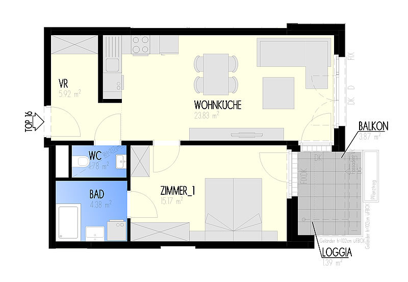 Garten-Städtchen-22 – Wohnen am Fliedergarten Marlen-Haushofer-Weg 2 & 4 (Raffenstättergasse) , 1220 Wien Eckdaten Haus 2 • Stock 2.OG • Top 2-16 Zimmer 2 • Größe 51,08 m²/3,87 m² Balkon Bezug geplant Anfang 2023 Preis/Finanzierung Gesamtkaufpreis EUR 228.000,00