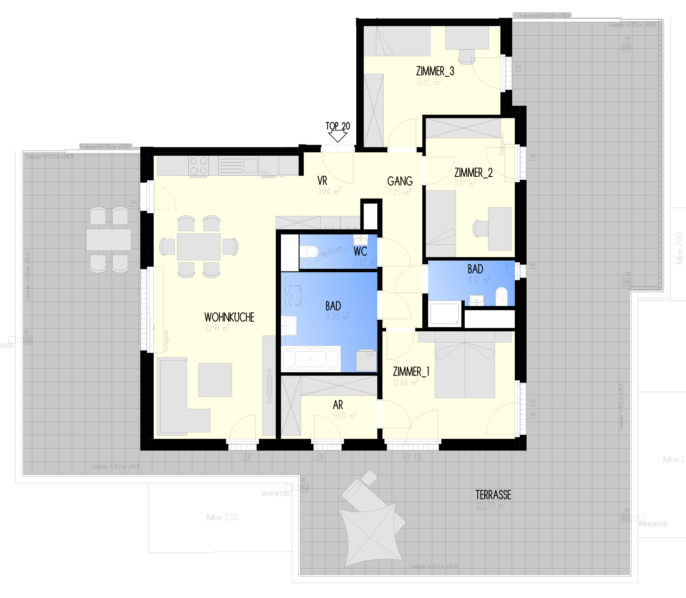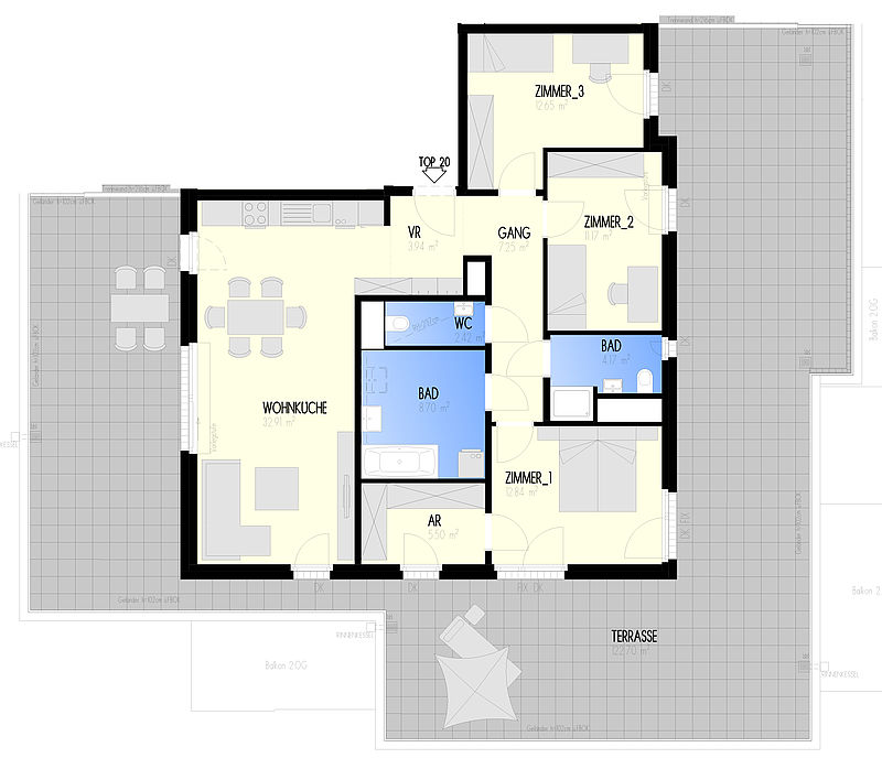 Garten-Städtchen-22 – Wohnen am Fliedergarten Marlen-Haushofer-Weg 2 & 4 (Raffenstättergasse) , 1220 Wien Eckdaten Haus 2 • Stock DG • Top 2-20 Zimmer 4 • Größe 101,73 m²/122,7 m² Dachterrasse Bezug geplant Anfang 2023 Preis/Finanzierung Gesamtkaufpreis EUR 625.000,00