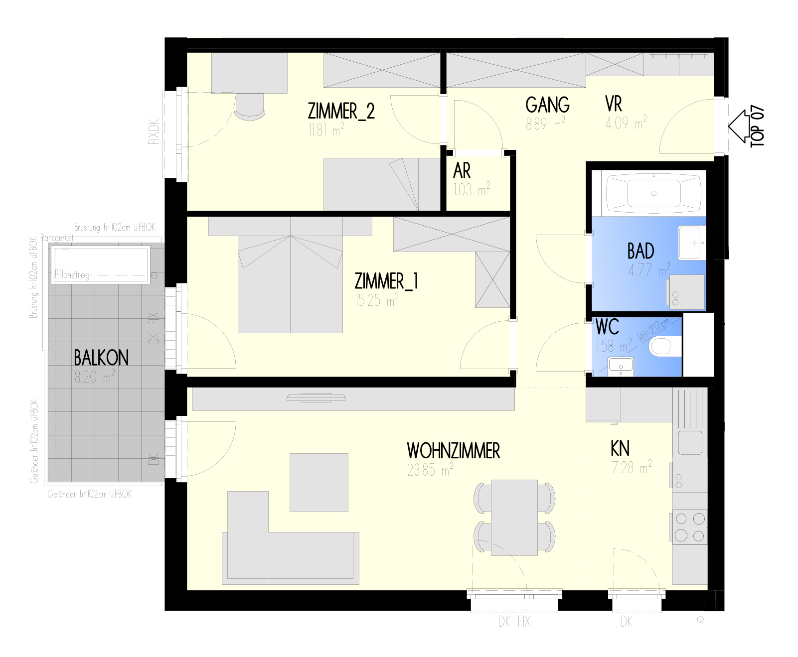 Garten-Städtchen-22 – Wohnen am Fliedergarten Marlen-Haushofer-Weg 2 & 4 (Raffenstättergasse) , 1220 Wien Eckdaten Haus 4 • Stock 1.OG • Top 4-07 Zimmer 3 • Größe 78,55 m²/8,2 m² Balkon Bezug geplant Anfang 2023 Preis/Finanzierung Gesamtkaufpreis EUR 358.000,00