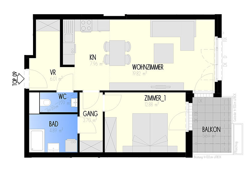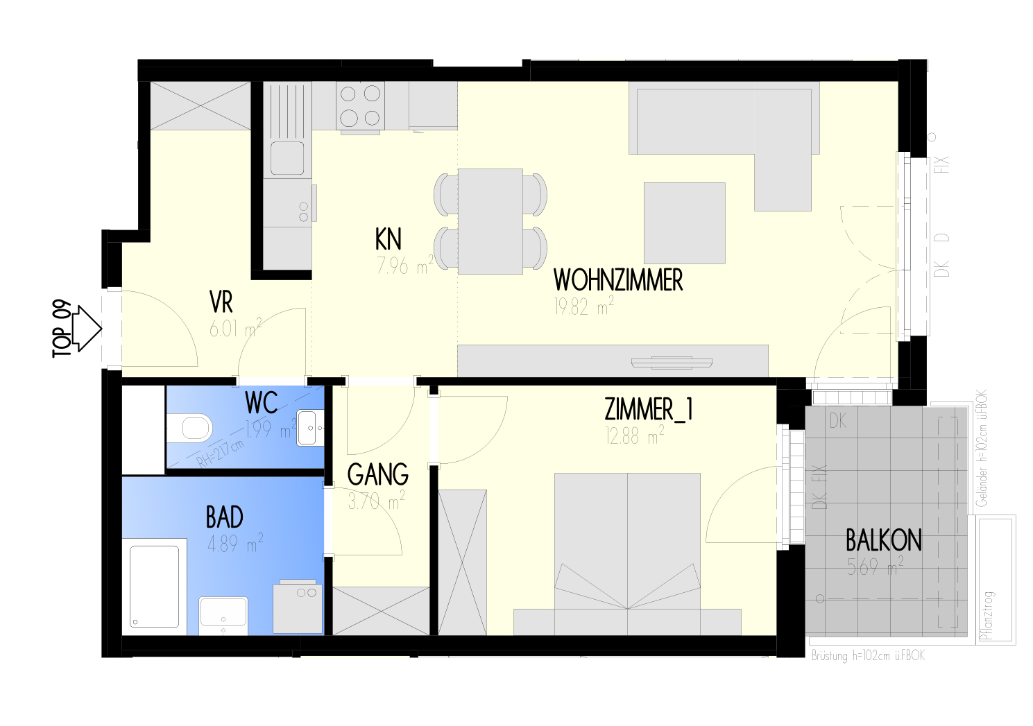 Garten-Städtchen-22 – Wohnen am Fliedergarten Marlen-Haushofer-Weg 2 & 4 (Raffenstättergasse) , 1220 Wien Eckdaten Haus 4 • Stock 1.OG • Top 4-09 Zimmer 2 • Größe 57,25 m²/5,69 m² Balkon Bezug geplant Anfang 2023 Preis/Finanzierung Gesamtkaufpreis EUR 236.000,00