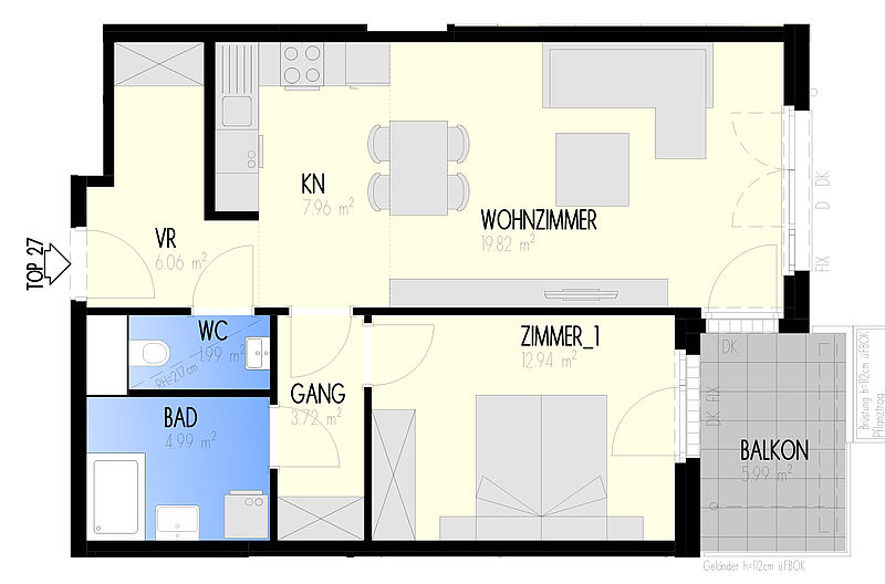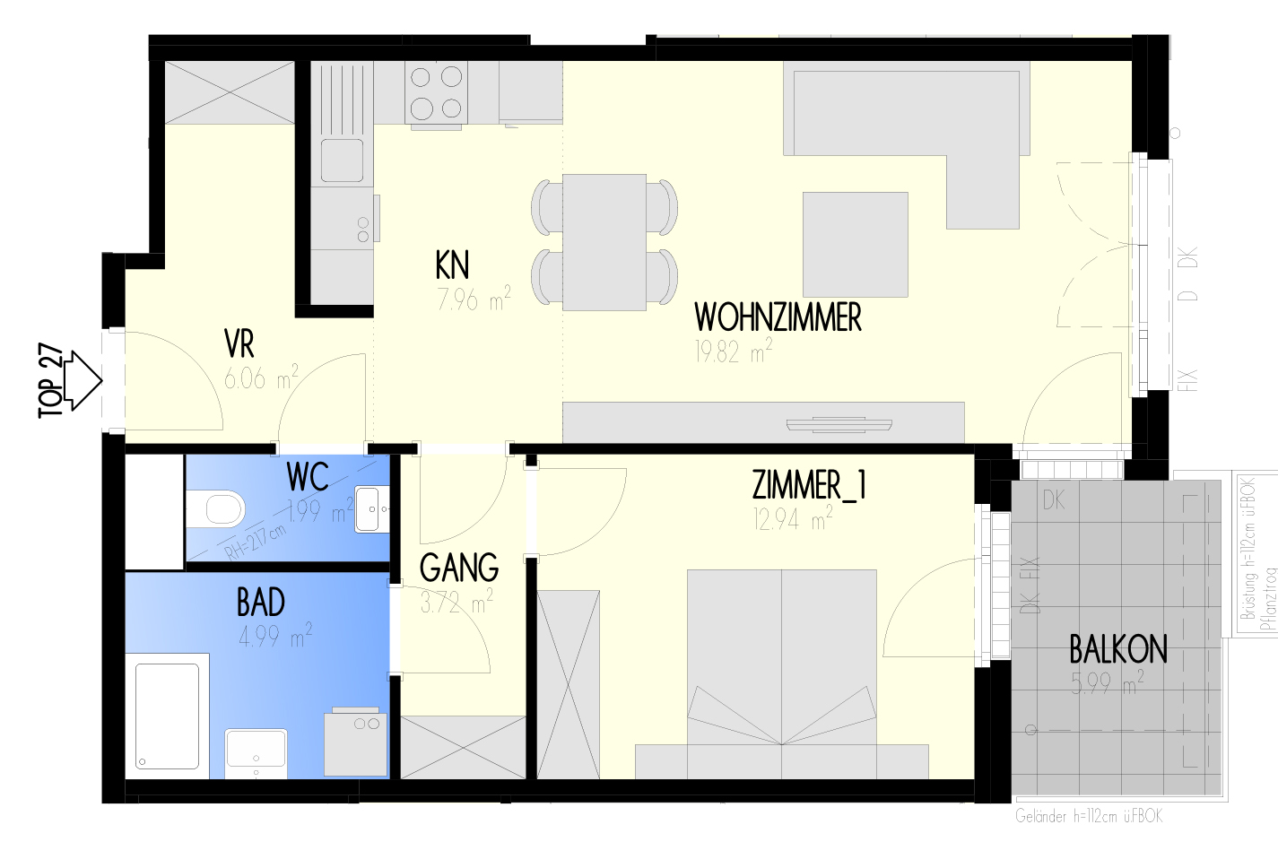 Garten-Städtchen-22 – Wohnen am Fliedergarten Marlen-Haushofer-Weg 2 & 4 (Raffenstättergasse) , 1220 Wien Eckdaten Haus 4 • Stock 4.OG • Top 4-27 Zimmer 2 • Größe 57,48 m²/5,99 m² Balkon Bezug geplant Anfang 2023 Preis/Finanzierung Gesamtkaufpreis EUR 248.000,00