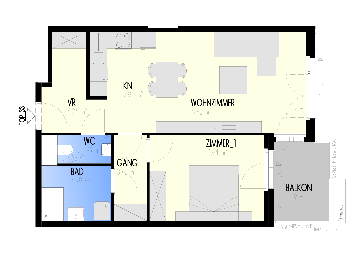 Garten-Städtchen-22 – Wohnen am Fliedergarten Marlen-Haushofer-Weg 2 & 4 (Raffenstättergasse) , 1220 Wien Eckdaten Haus 4 • Stock 5.OG • Top 4-33 Zimmer 2 • Größe 57,48 m²/5,69 m² Balkon Bezug geplant Anfang 2023 Preis/Finanzierung Gesamtkaufpreis EUR 256.000,00