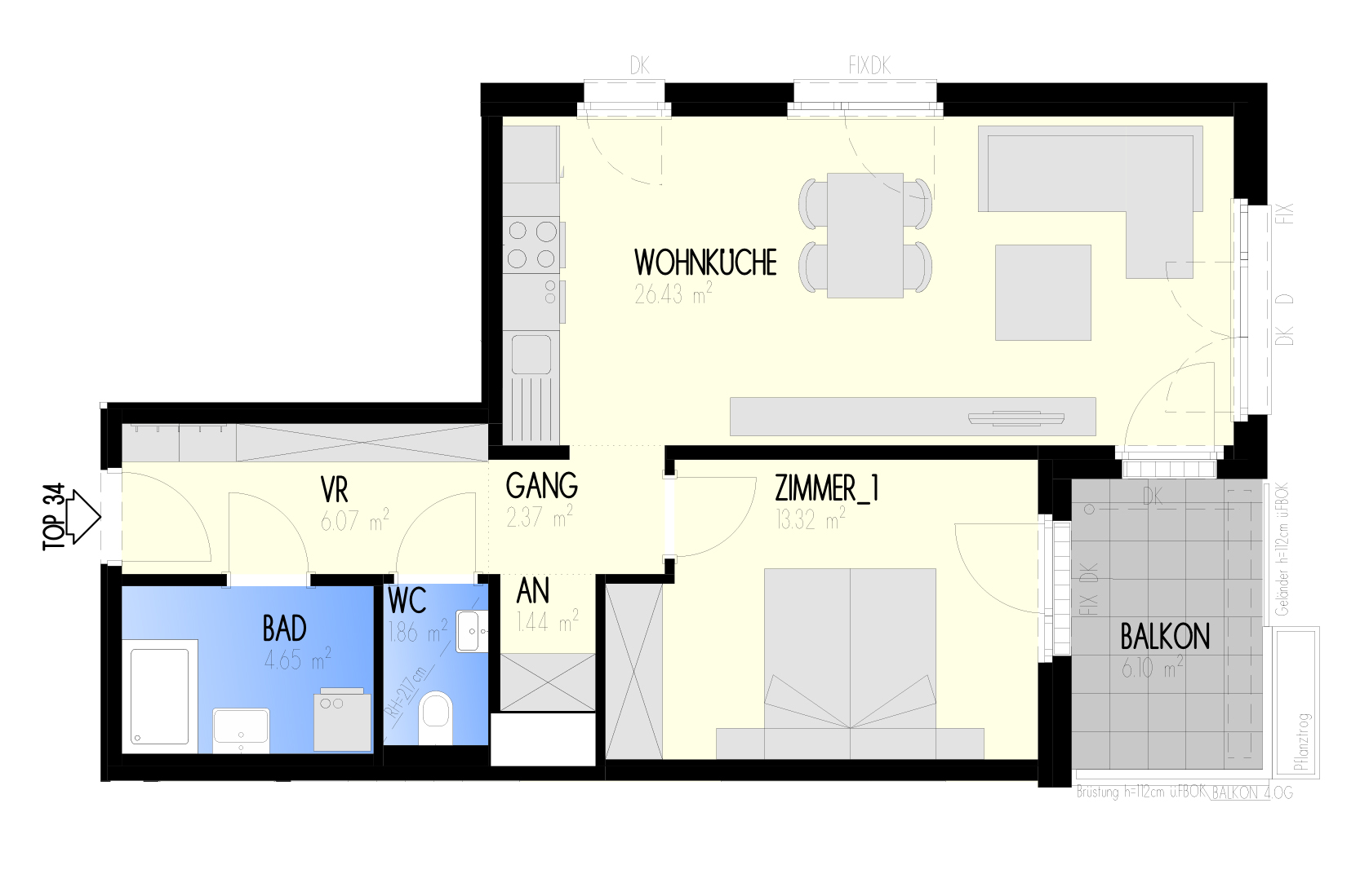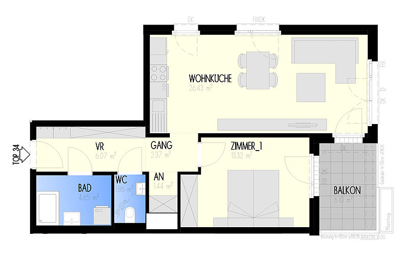 Garten-Städtchen-22 – Wohnen am Fliedergarten Marlen-Haushofer-Weg 2 & 4 (Raffenstättergasse) , 1220 Wien Eckdaten Haus 4 • Stock 5.OG • Top 4-34 Zimmer 2 • Größe 56,14 m²/6,1 m² Balkon Bezug geplant Anfang 2023 Preis/Finanzierung Gesamtkaufpreis EUR 258.000,00