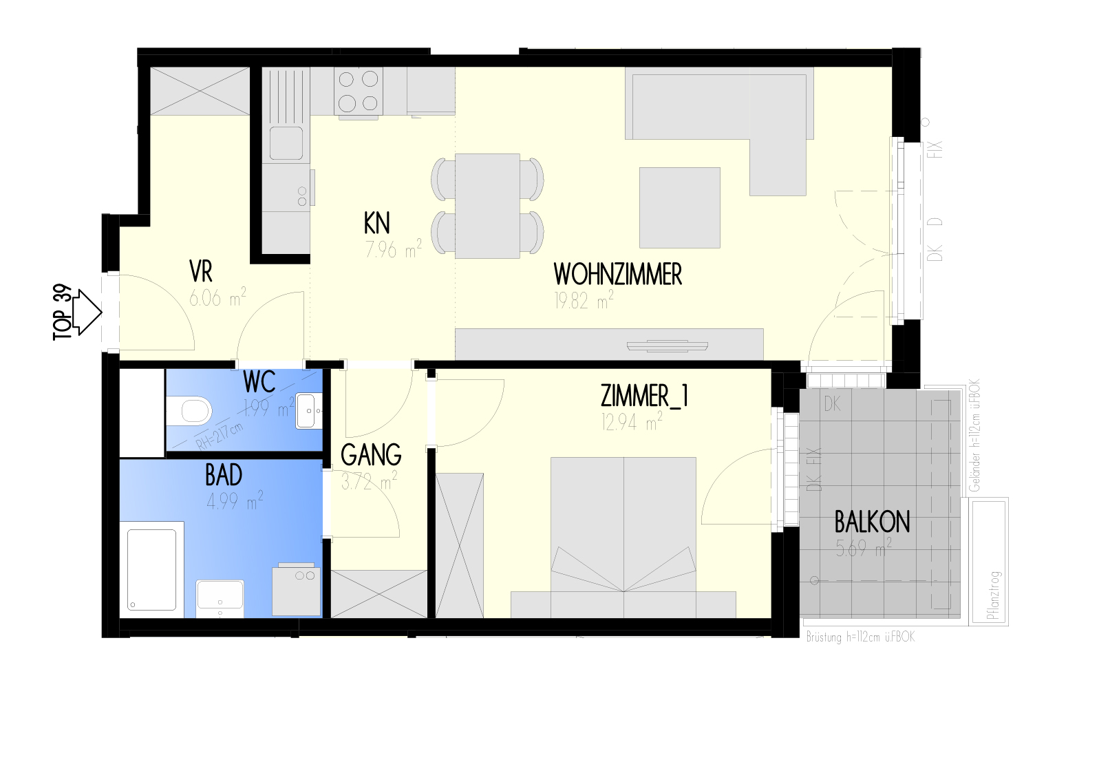 Garten-Städtchen-22 – Wohnen am Fliedergarten Marlen-Haushofer-Weg 2 & 4 (Raffenstättergasse) , 1220 Wien Eckdaten Haus 4 • Stock 6.OG • Top 4-39 Zimmer 2 • Größe 57,48 m²/5,69 m² Balkon Bezug geplant Anfang 2023 Preis/Finanzierung Gesamtkaufpreis EUR 262.000,00