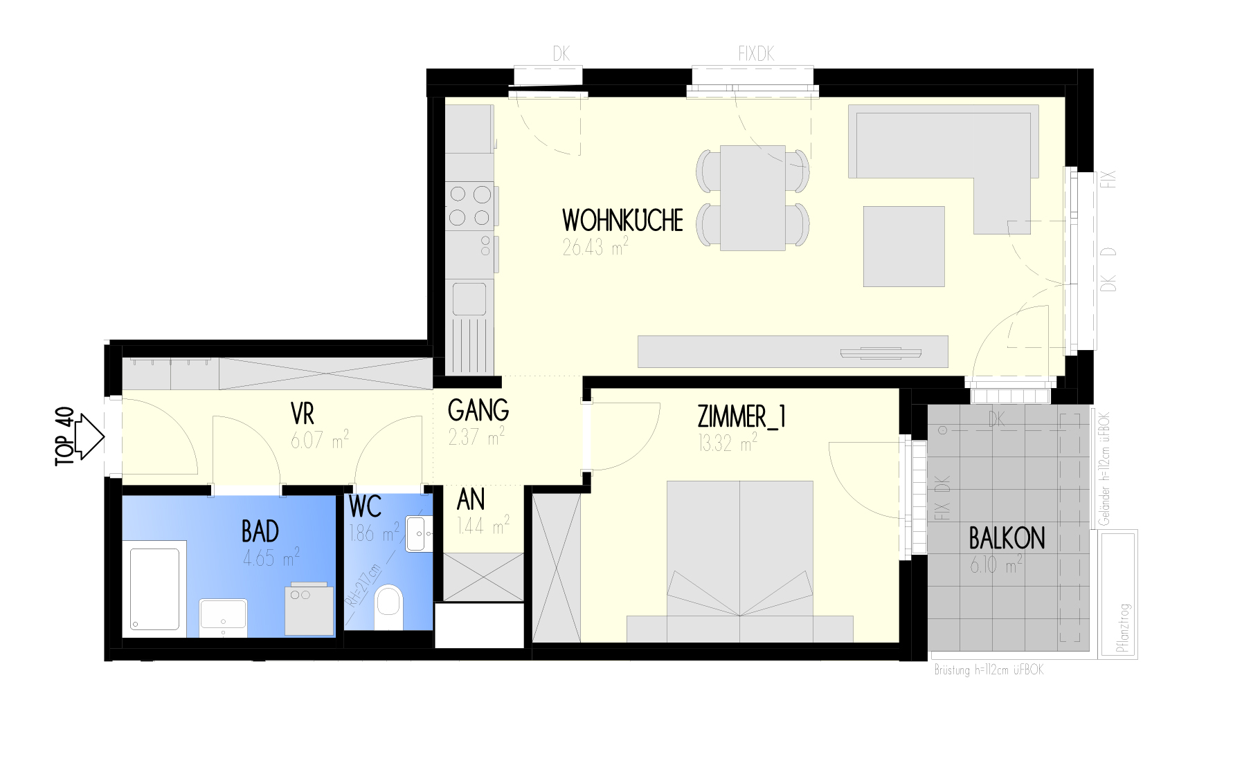 Garten-Städtchen-22 – Wohnen am Fliedergarten Marlen-Haushofer-Weg 2 & 4 (Raffenstättergasse) , 1220 Wien Eckdaten Haus 4 • Stock 6.OG • Top 4-40 Zimmer 2 • Größe 56,14 m²/6,1 m² Balkon Bezug geplant Anfang 2023 Preis/Finanzierung Gesamtkaufpreis EUR 264.000,00