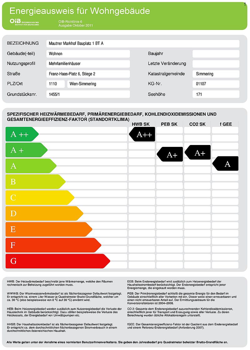 Spätestens beim Verkauf einer Eigentumswohnung in Wien bzw. der Vermietung einer Wohnung in Wien ist ein ab Ausstellung, 10 Jahre gültiger Energieausweis dem Käufer bzw. Mieter (eines Hauses oder Wohnung) zu übergeben.